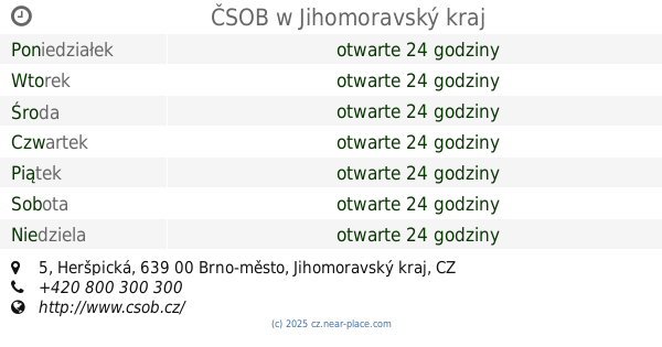 | Środa | otwarte 24 godziny | |||||